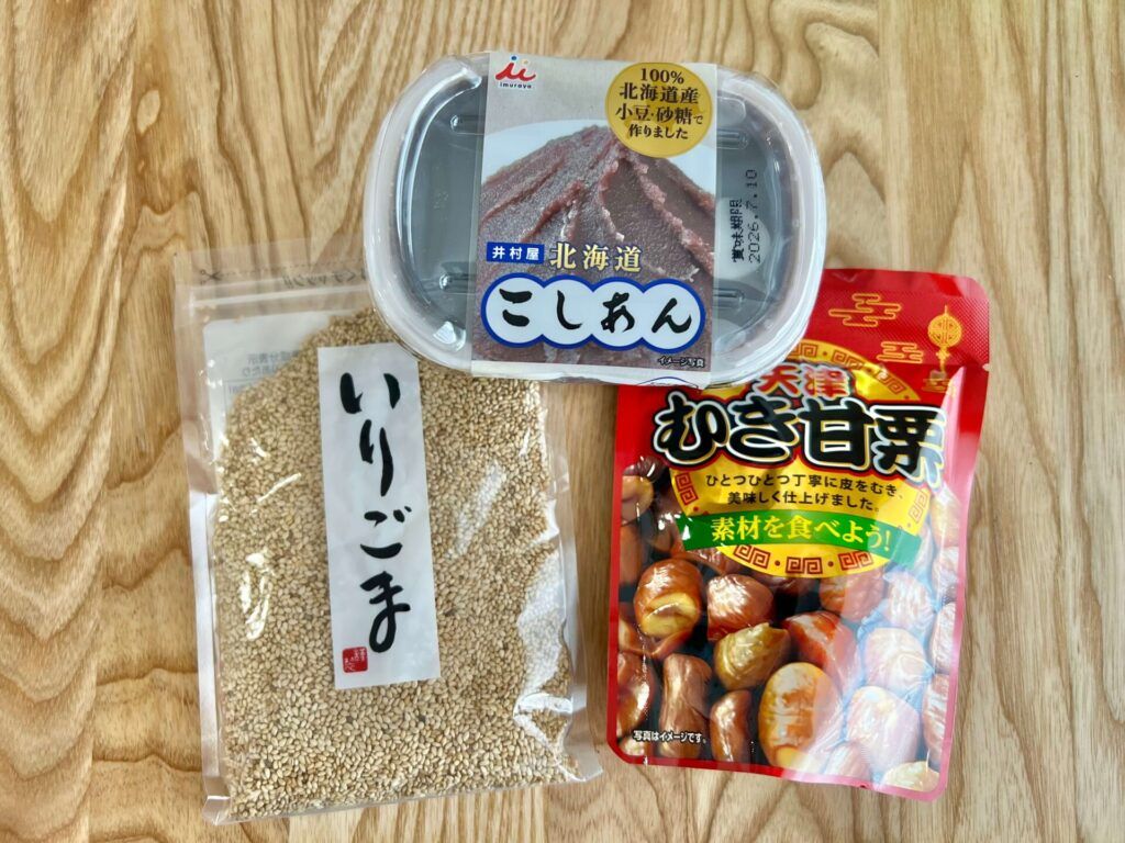 甘栗餡やケシの実など製菓材料店でしか手に入らないものは使わず、スーパーで買える材料のみで作ります。