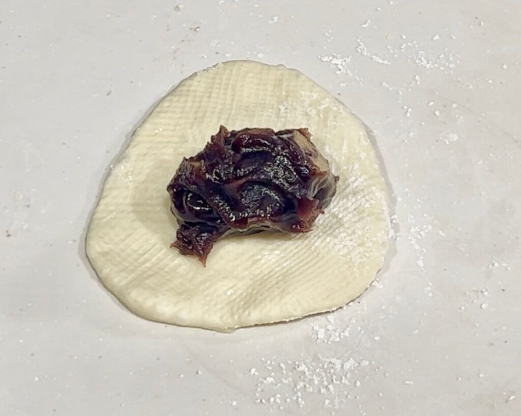 ④真ん中に餡をのせる。