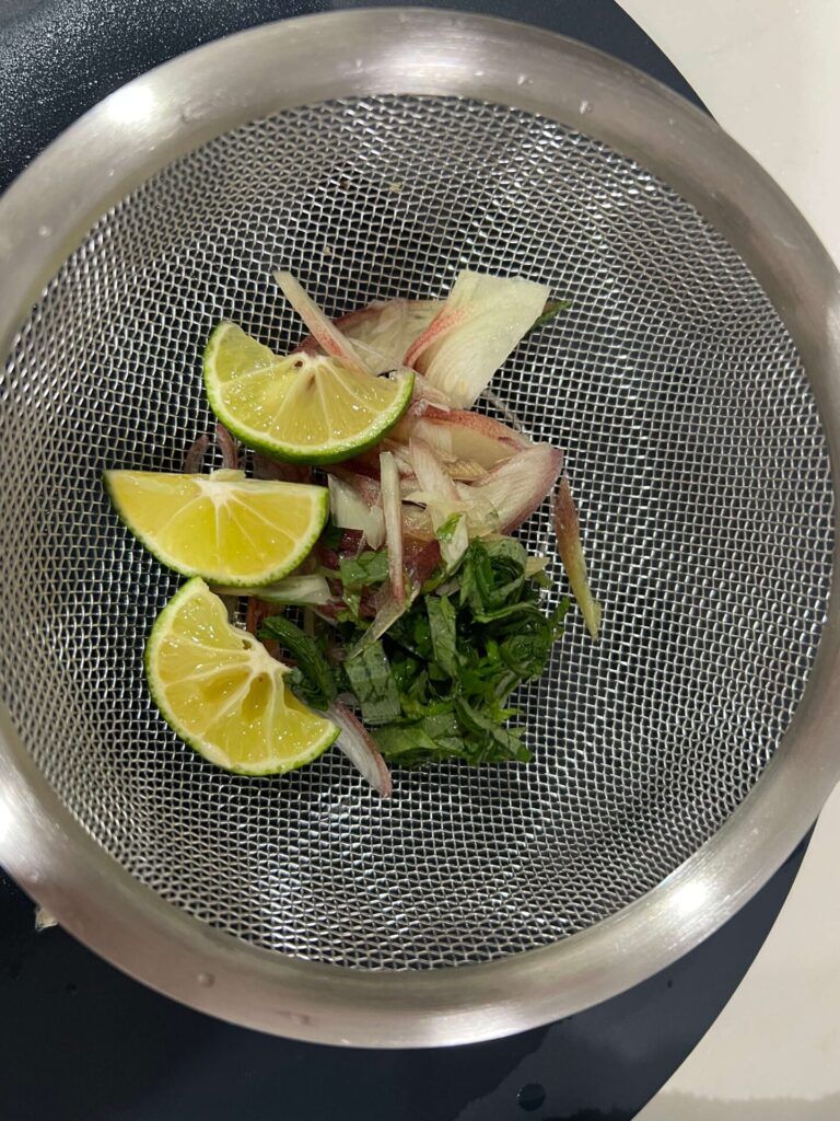 骨を取り除いて混ぜ込み、ネギ後のせ⬇︎